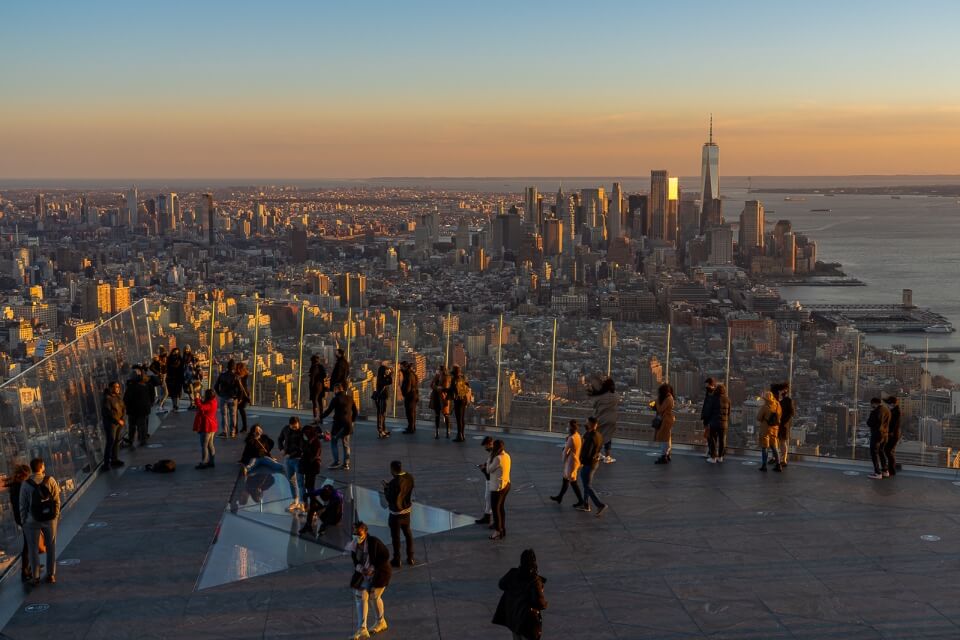 After walking around Vessel and Shed next to it, go inside the shopping mall at Hudson Yards. It reminds us of those super malls you see in Dubai and Singapore with its pristine finish and upscale feel, just on a much smaller scale. On the 4th floor you’ll find the entrance to Edge. We’ve been up to the Edge observation deck twice for sunset and we absolutely love the views, so definitely consider adding it into your NYC itinerary.