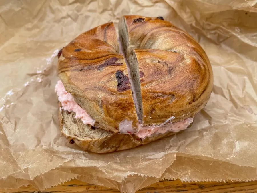Travel Tip: The cinnamon walnut raisin cream cheese is one of our favorites. Or you can be adventurous with the bacon honey sriracha.