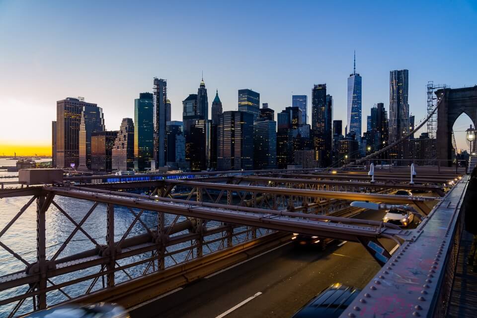 The bridge is quiet if you walk across earlier in the morning, but it gets much busier throughout the day and it’s packed full of tourists at sunset. By night, you’ll get one of the best Lower Manhattan skyline views as you walk across the Brooklyn Bridge.