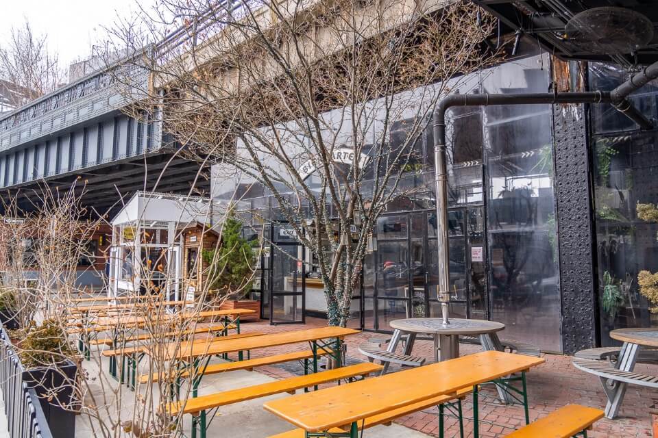 - There’s two small tables out front and a full outdoor dining area out back