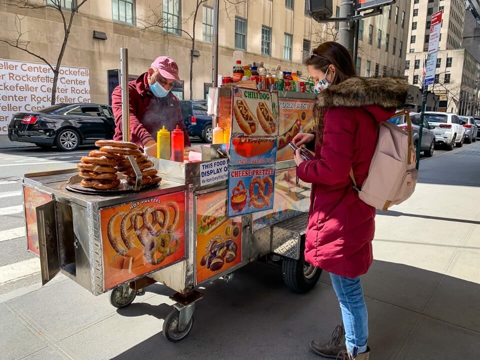 Does anything scream NYC tourist more than snacking on a hotdog from a mobile hotdog stand?! Who cares, you have to try at least one during your visit to New York. You’ll find hotdog stands pretty much everywhere around the streets of Manhattan.