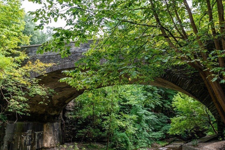 After continuing along the Gorge Trail, you’ll come to a beautiful stone bridge crossing over Buttermilk Creek. This bridge will lead you back to the Rim Trail or you can use it as a shortcut to get to the Gorge when starting on the Rim Trail.