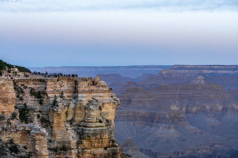 Time everything so you arrive at Hopi Point around one hour before sunset. It’s our favorite Grand Canyon South Rim sunset spot, but the problem is that most others agree which means Hopi Point gets super crowded every evening.