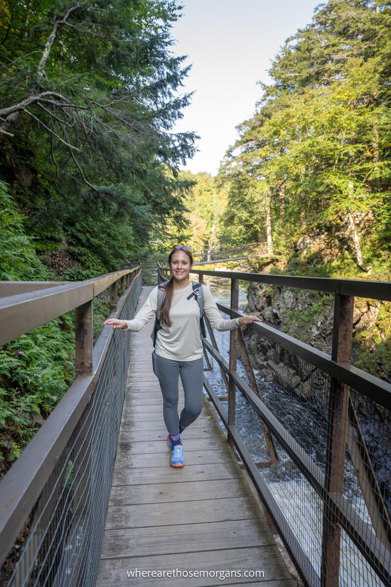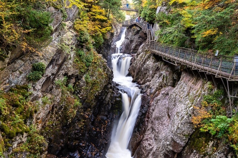 High Falls Gorge is one of our favorite places to visit near Lake Placid. After slowly meandering around the gorge’s wooden boardwalks and bridges during our first New England fall foliage road trip, we went back for a second visit a few years later. Overall, we think it’s a fantastic natural attraction for families and couples because it’s fun, picturesque and so easy to explore.