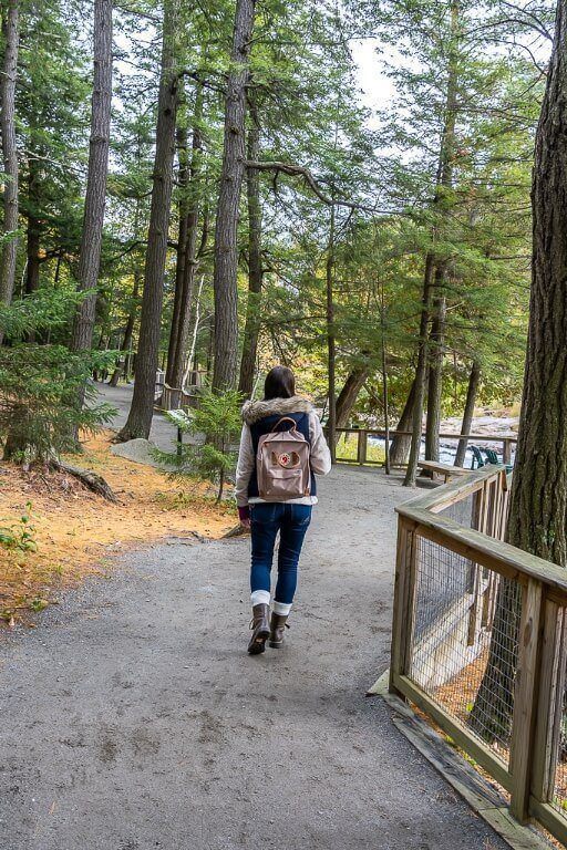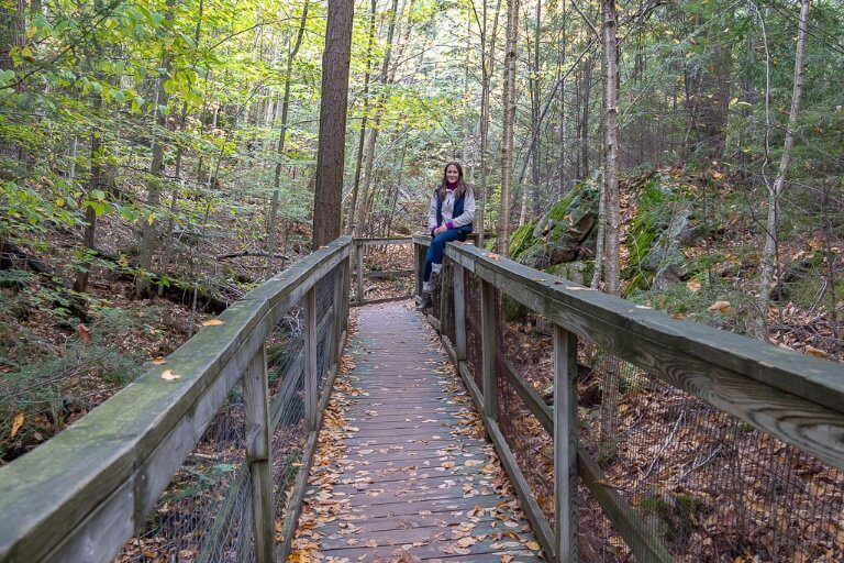 The first time we visited High Falls Gorge, we didn’t hike the Nature Trail. But second time around we decided to give it a go. It’s a 1-mile loop hike through a forest with steep inclines and around 300 ft elevation change. It was okay, but it didn’t lead to anything. So we’d say only do it if you really want the extra exercise, but even then there are much better hikes to do nearby.