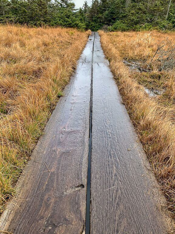 Not too long after getting back on the trail, we finally emerged out of the tree line and the hike instantly became more exciting. We followed yellow painted markers on large boulders and long wooden boards crossing swampy grassland to stay on trail. It was nice to be back out in the open and exposed to the elements after spending so long in the forest.