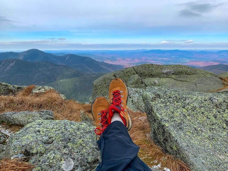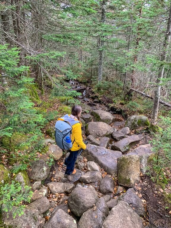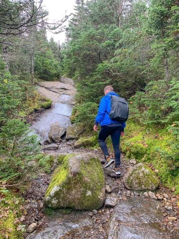 The hike up Mount Marcy involves many different ground types but much of the trail consists of uneven rocks, so you should wear a sturdy hiking boot or trail running shoe. Kristen hiked in these Columbia Newton Ridge Boots and Mark wore these Adidas Terrex Free Hikers for our Mt Marcy hike.