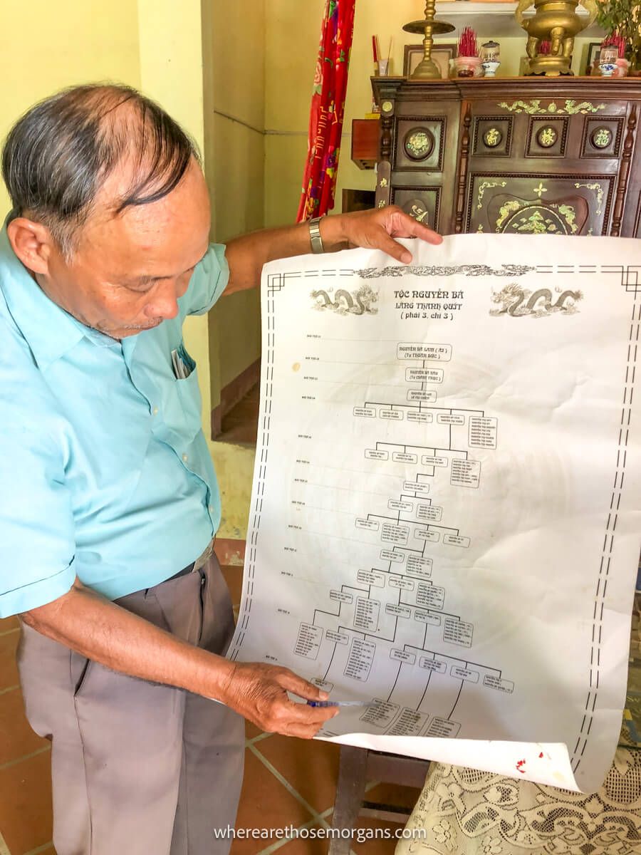 We asked him about the spirit houses which we’d seen all over Vietnam. These are typically little houses with a small roofs sitting on top of a single pillar along the side of a road. But he told us spirit houses can vary in size with some being large enough to walk through.