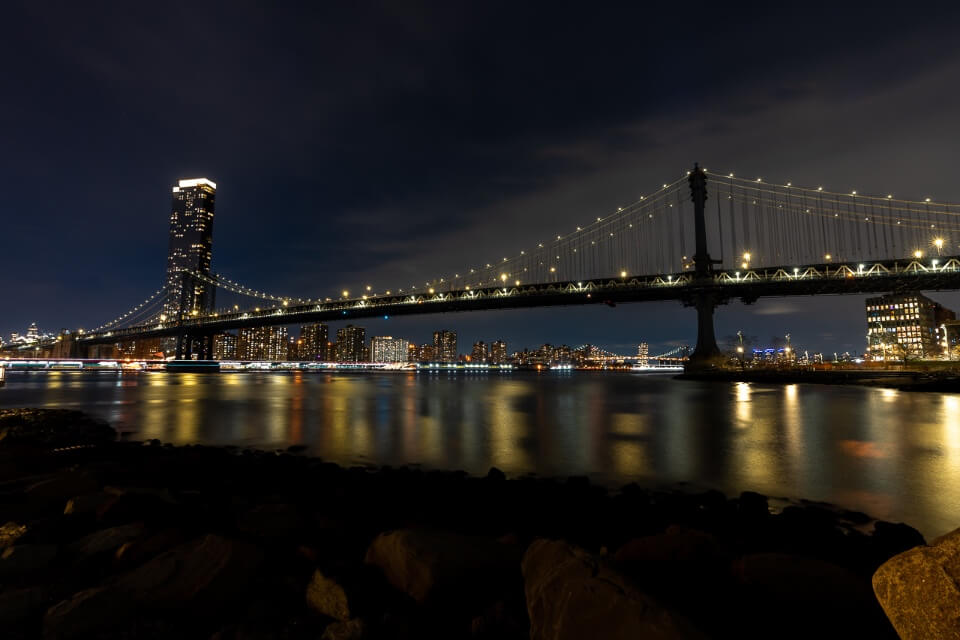 You’ll find this beach to be much quieter so it’s far easier to take photographs. After you have finished here, you can head down to DUMBO for your night shots. You can find the current New York City sunset times here.