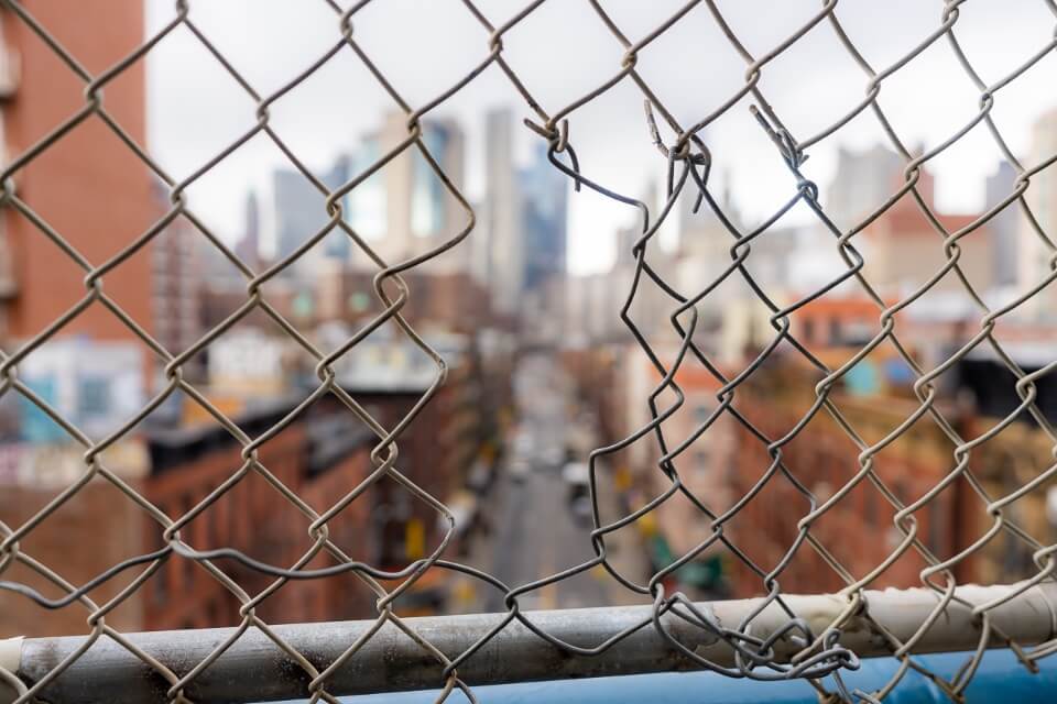 Throughout the course of our walk to Brooklyn, many more holes appeared in the fence. The frames of Brooklyn Bridge and Lower Manhattan were plentiful.