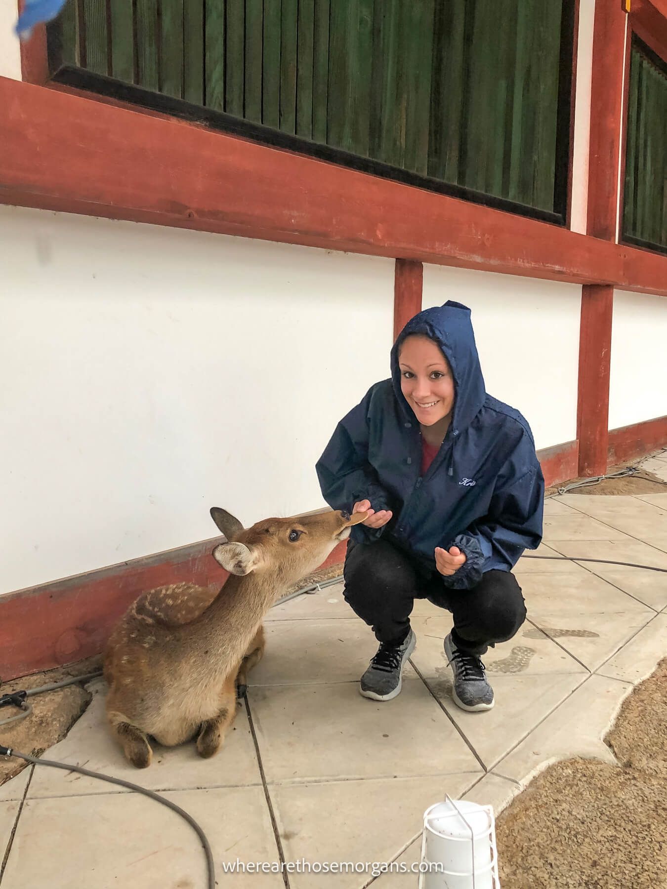 Even as a huge animal lover, Kristen was nervous to re-visit the deer park in Nara after our first trip. Remember, even if the deer appear calm, they are still wild and undomesticated animals. When researching, we found this article about the increase in visitors being injured by the deer, which didn’t surprise us.