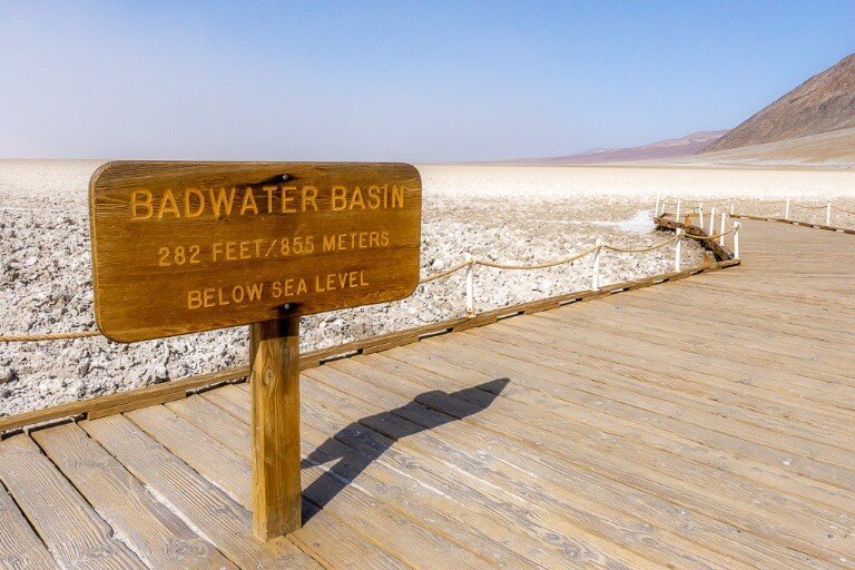 Depending on the time of year you visit, Badwater Basin could have photogenic hexagonal salt crystal patterns, be covered in a shallow layer of water for awesome reflection photos, or be somewhere in between. During both our trips to Death Valley, the salt flats were dried up and had no shape which was disappointing. Don’t forget to take some fun perspective photos!