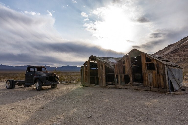 It’s likely you didn’t drive Titus Canyon earlier, so once you’re finished at Mesquite Flat Sand Dunes, cross the mountains into Nevada and eventually you’ll reach Rhyolite Ghost Town. This once thriving mining town is now arguably the best place in Death Valley for night photography. And you can’t visit a ghost town during the day, so it’s only fitting to end your day trip here in the darkness.
