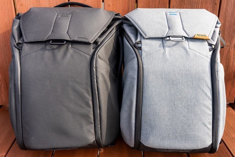 Initially, we bought one 20L and one 30L bag. Mark bought the 30L option in black to hold most of our camera gear, while Kristen bought the 20L in tan because she wanted a more compact backpack (the tan color is no longer available). But once we received the 20L backpack, we knew it wouldn’t be big enough to meet our needs. So we sent it straight back to Peak Design with no problems and replaced it with a 30L Ash color.