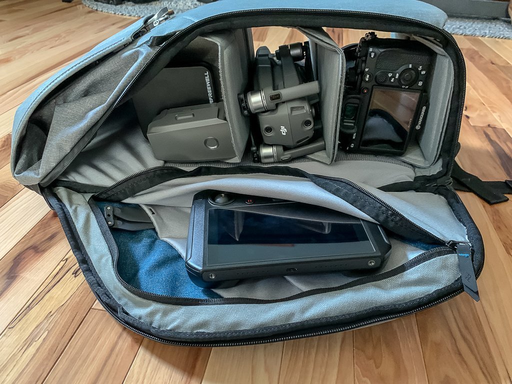 But our experiences when using this bag purely for creating content is why we are blowing such smoke. The ability to configure 3 custom dividers to guide the gear we have on any given day is the reason we’d never leave home without it. Typically, we carry two Sony cameras (α7R IV and α7 III) along with two Sony lenses (24-105mm and 16-35mm) plus occasionally a DJI Mavic 2 Pro with Smart Control.