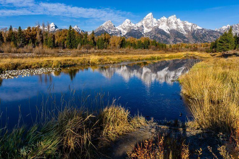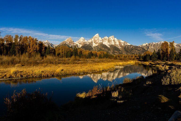 You can turn up here any time of day with your camera and take home stunning images, but we think sunrise is the best time of day for Schwabacher Landing photos for the following reasons:
