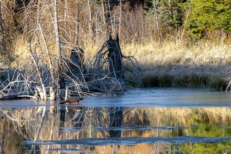 Follow the trail for as little or as long as you want to find new photography perspectives, look for wildlife and enjoy the views. Right at the very end of the trail you might see a large beaver dam, and maybe even beavers working on its construction if you visit at sunrise when they’re most active.