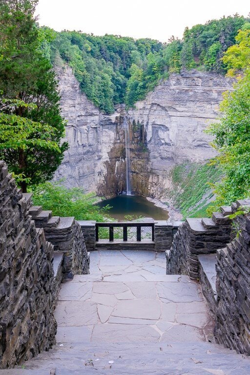 After hiking the Gorge Trail, your next stop should be the Taughannock Falls overlook. It features a beautifully crafted stone staircase creating a postcard perfect image. We think the Taughannock Falls viewpoint is one of the best photography locations in the entire state park. But depending on the time of year you visit, the waterfall will look very different.