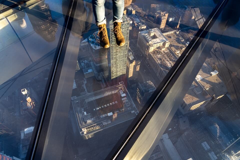 As you take in the views from the sky deck, one of the most popular photo spots is against the famous frameless glass panels on the eastern section. There will probably be a very long line so you’ll know exactly where to go.