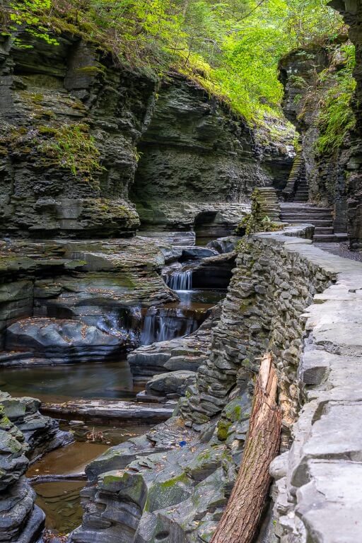 Couch’s Staircase is a series of 120 stone steps leading up and away to the left side. You don’t need to climb this series of stairs unless you want to see the Watkins Glen south entrance area.