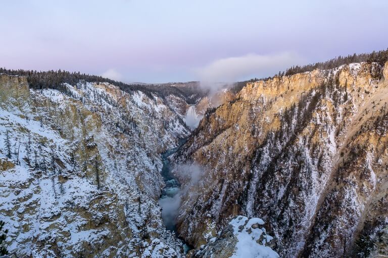 Start out the third day with a drive along South Rim of the Grand Canyon of the Yellowstone. We highly recommend arriving at Artist Point in time for sunrise because itâs a stunning scene. Weâve done it twice and itâs lovely. Stop at Upper Falls View on the way back and look out for eagles, we saw a huge eagle fly out of a nearby tree last time we were there. It was awesome!