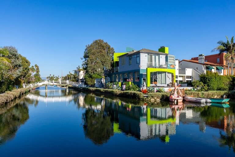 Hidden behind Venice Beach are a series of intricate and picturesque canals with modern houses reflecting in the perfectly still water. So if you want to avoid the gritty Venice Beach area, head straight to the canals for a more relaxing experience.