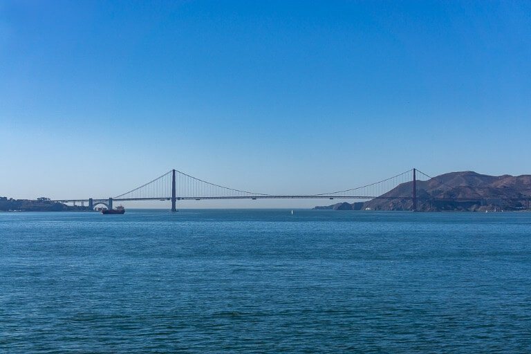 One of the easiest and most enjoyable ways to benefit from a diverse range of Golden Gate Bridge views is to take a San Francisco Bay Cruise. The cruise begins in Fisherman’s Wharf and passes by Alcatraz Island. It also goes directly underneath the bridge, so you’d get a totally unique photo spot that you can only get from a boat.