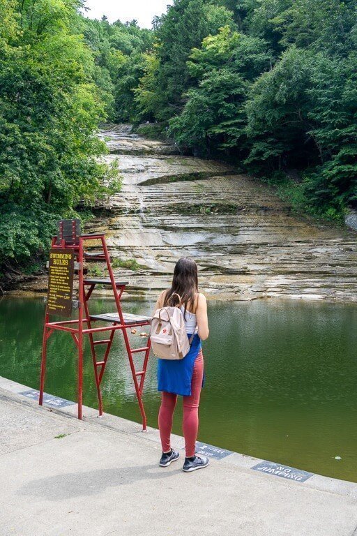 While you can not swim in the creek along the Gorge Trail, you can swim in the natural stream fed swimming pool at the base of Buttermilk Falls. The pool is open most weekends from the end of May to early September. However, it’s dependent on weather conditions so always contact the park before visiting to confirm if the pool is open.