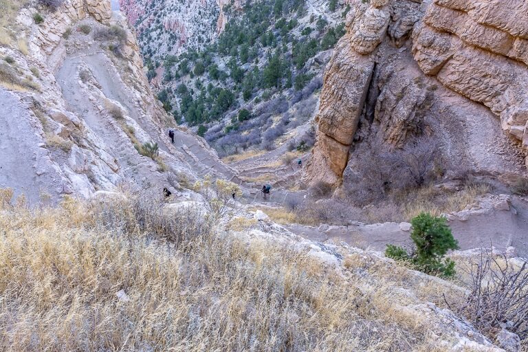 Bright Angel Trail is the most popular trail for day hiking into the Grand Canyon because it’s closer to the visitor center, easier to access and less steep than South Kaibab. The views are awesome, but our issue is that they remain pretty much the same until much further down and beyond Havasupai Gardens.