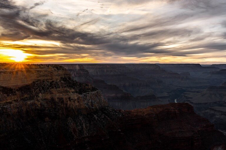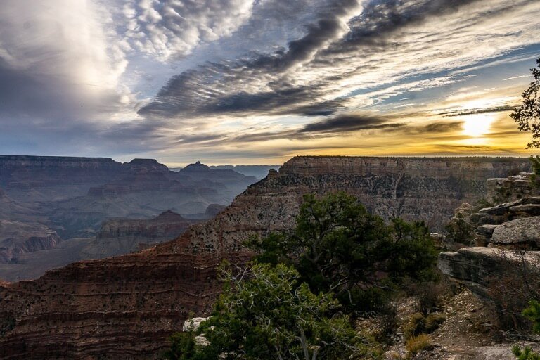 We watched a wonderful sunrise from the famous Mather Point vista but it was busy, so the next morning we walked a few minutes east around the rim and found a secluded rocky outcrop which we had to ourselves. It’s one of our favorite places in the world to see the sun rising at dawn, so don’t miss it.