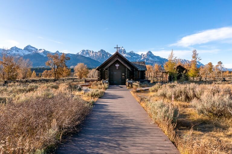 Spend a few minutes walking around String Lake, then head down to Jenny Lake Overlook which is one of our favorite photo spots in the park. It’ll be getting later in the afternoon by now, so leave Jenny Lake for tomorrow and drive south so you can see the incredible view of mountains through a window inside the Chapel of the Transfiguration. We recommend finishing with sunset back at Mormon Row and then head back to Jackson for dinner and drinks.