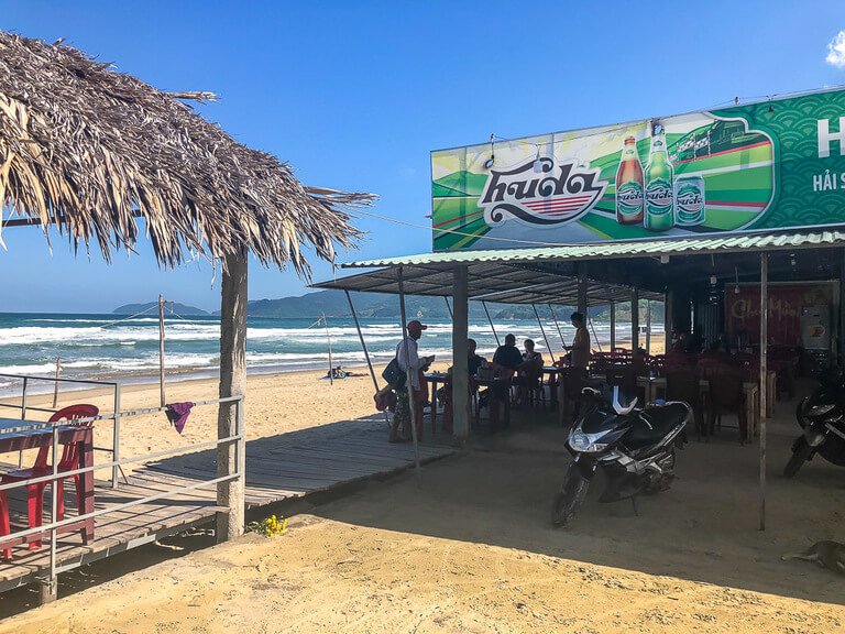 Not far from Elephant Springs is Lang Co beach, which is one of the prettiest areas of the day. We were hungry but before stopping for lunch we drove along the narrow spit of land separating the sea from a small lagoon. Around a dozen beachside restaurants made of wood sitting on stilts provided an extremely serene atmosphere.