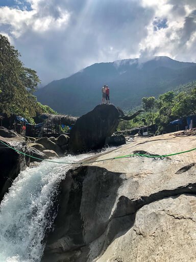 Before jumping in, we walked up some wooden boardwalks and over boulders to check the area out. Phu also took a few photos of us on elephant rock, which obviously had been man made using wrought iron bars. But after a few photos, we both enjoyed jumping in to cool off from the heat and humidity.