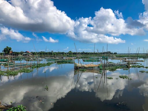 Full of fuel and newly found confidence, we followed Phu down some narrow dirt roads cutting through waterlogged rice paddies. Swerving left and right alongside fishing lakes and through rural villages. We began to relax as we were really getting the hang of this.