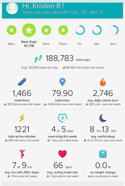 As a beginner hiker, we also recommend tracking your statistics as you hike. Many hiking apps will do this or you can use fitness watches such as the Fitbit or Garmin. Above you can see a snapshot of our stats from hiking the W-Trek in Patagonia, Chile.