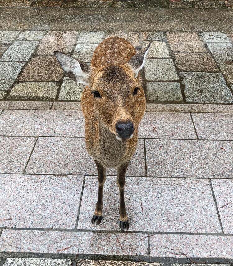 Local folklore suggests that the sika deer became sacred after a visit from the first of the four gods from the Kasugataisha Shrine. Therefore, these sacred animals in Nara are considered messengers of the Gods. The deer here will approach humans and they wander the city at their will.