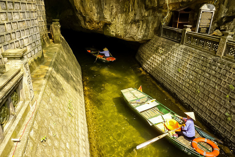 - First, head for the Trang An boat tour. It opens a 7:00am so we recommend getting there bright and early. This way you’ll beat the heat and the crowds. Imagine floating around the giant limestone rocks as the sun begins to glow with orange hues in the early hours of dawn. Minimal boats will also enhance your experience.