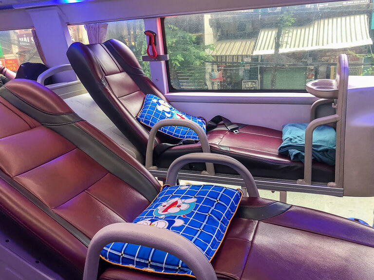 - Bus – If you’re a new traveler in Vietnam, we highly recommend taking a sleeper bus at least once for the experience. You won’t need a sleeper bus to get to Ninh Binh, just a normal day time bus that will take a few hours. Our bus from Halong Bay to Ninh Binh was 2 hours late setting off and took around 4 hair raising hours to arrive in Tam Coc directly. You can book a bus to Ninh Binh here.