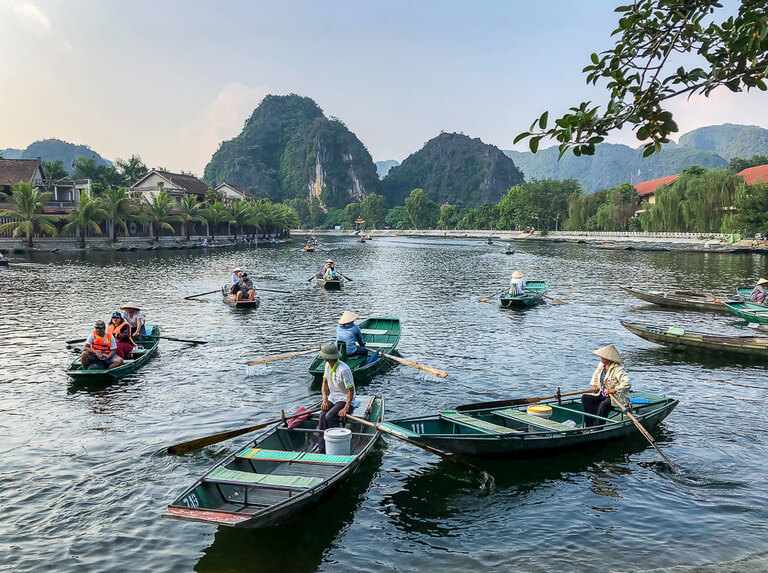 That all being said, we did run into travelers who experienced a wonderful boat ride. There’s one particular section that looks stunning and it’s the same segment you can see from the summit of Mua Cave Viewpoint where the boats pass through the limestone valley. If you go into the experience knowing you really have to stand your ground, the Tam Coc boat ride might be a good option for you and then you won’t have to deal with driving out to Trang An.