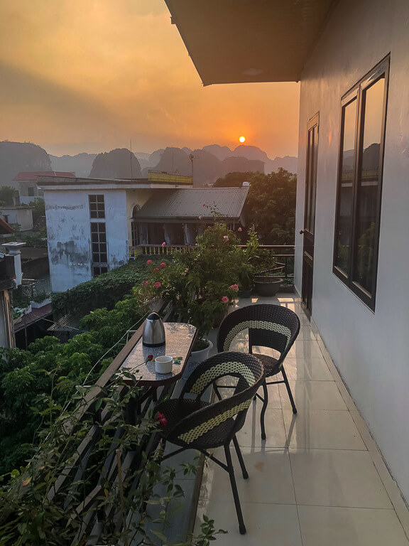 We stayed at a small budget place called Tam Coc Dream Homestay. It’s centrally located in Tam Coc just a few minutes walk from the strip of restaurants and the main boat dock. The owners were lovely and the hotel price included a buffet breakfast each morning. We were able to hire bicycles and a motorbike directly at the hotel for a better price than town. It cost us $10/night which was perfect for our budget at the time and the views from the upper balcony were fantastic.