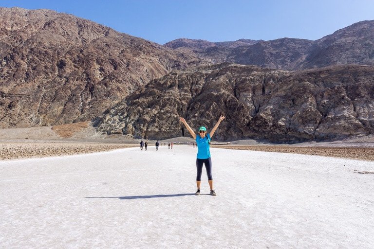 Depending on the time of year you visit, Badwater Basin could have photogenic hexagonal salt crystal patterns, be covered in a shallow layer of water for awesome reflection photos, or be somewhere in between. During both our trips to Death Valley, the salt flats were dried up and had no shape which was disappointing. Don’t forget to take some fun perspective photos!