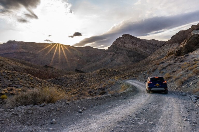 This will only work if you have the right vehicle and you might need to cut a hike or attraction so you have enough time. It took us around 2 and a half hours. To reach the one-way road head northwest on CA-190, take a right onto Scotty’s Castle Road and then another right onto Daylight Pass Road. Cross over the mountains and into Nevada, then take a left turn onto Titus Canyon Road.