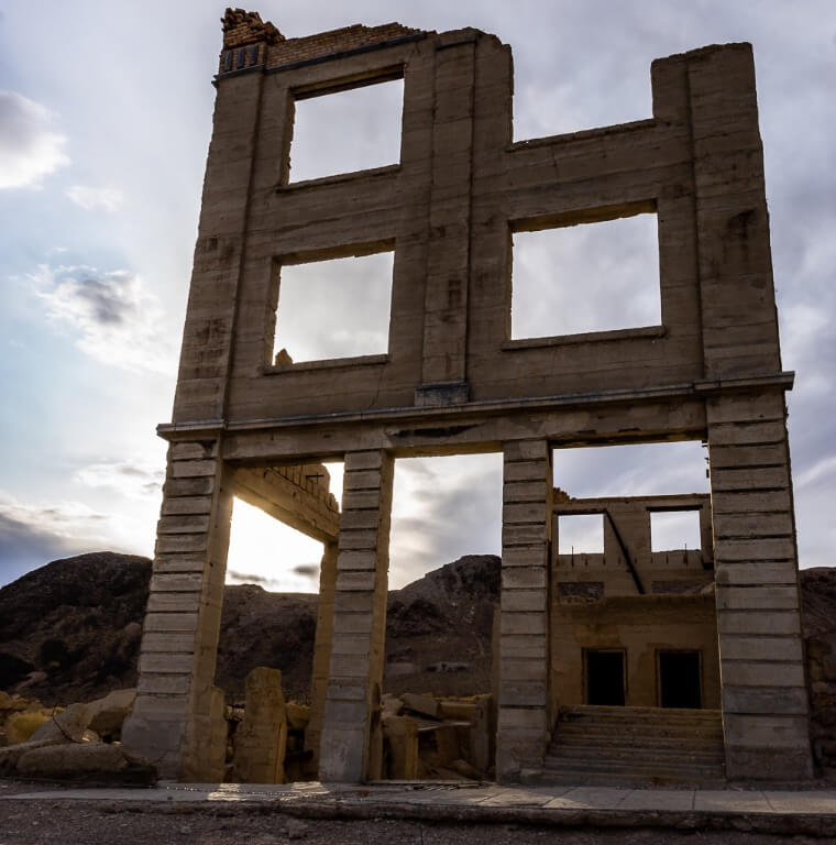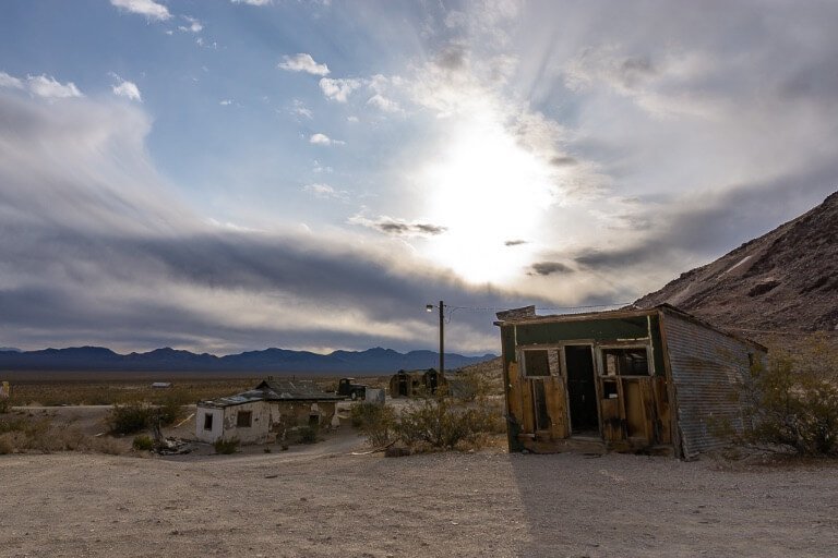 It’s likely you didn’t drive Titus Canyon earlier, so once you’re finished at Mesquite Flat Sand Dunes, cross the mountains into Nevada and eventually you’ll reach Rhyolite Ghost Town. This once thriving mining town is now arguably the best place in Death Valley for night photography. And you can’t visit a ghost town during the day, so it’s only fitting to end your day trip here in the darkness.