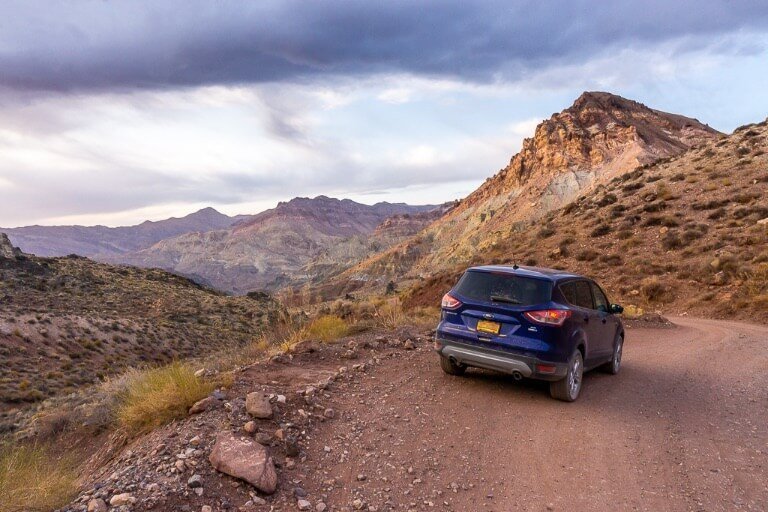 If you’re visiting Death Valley with a high clearance vehicle, we can’t recommend driving Titus Canyon highly enough. It’s the most popular backcountry road in the park thanks to stunning views and an exciting driving route. The last 3 miles in particular are so much fun. We had the whole thing to ourselves and we finished just in time before it got too dark, which was equal parts eerie and awesome!