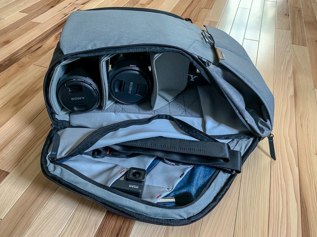 But our experiences when using this bag purely for creating content is why we are blowing such smoke. The ability to configure 3 custom dividers to guide the gear we have on any given day is the reason we’d never leave home without it. Typically, we carry two Sony cameras (α7R IV and α7 III) along with two Sony lenses (24-105mm and 16-35mm) plus occasionally a DJI Mavic 2 Pro with Smart Control.