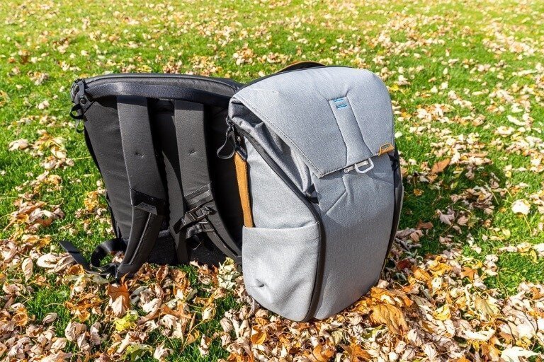 Initially, we bought one 20L and one 30L bag. Mark bought the 30L option in black to hold most of our camera gear, while Kristen bought the 20L in tan because she wanted a more compact backpack (the tan color is no longer available). But once we received the 20L backpack, we knew it wouldn’t be big enough to meet our needs. So we sent it straight back to Peak Design with no problems and replaced it with a 30L Ash color.