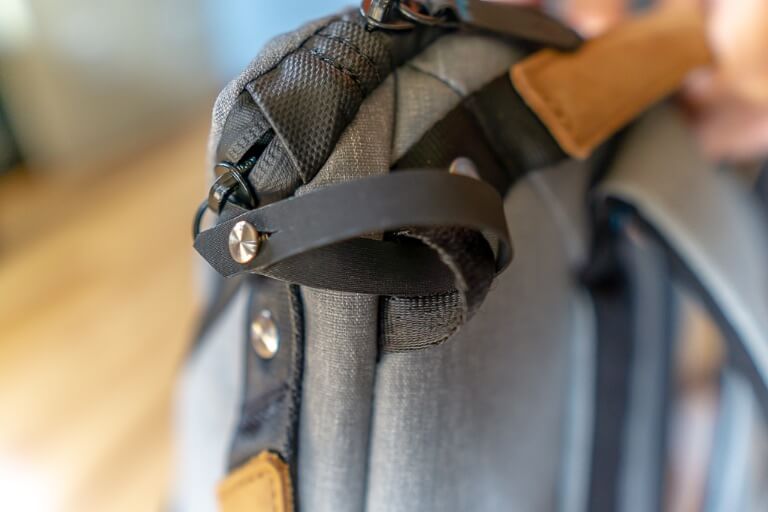 Taken straight from the Peak Design website, the outer shell is DWR impregnated and double PU-coated making the backpack very water-resistance, but not entirely waterproof. However, we’ve hiked a lot of miles in the heavy rain with our backpacks and while the outside does get wet, all of our expensive camera equipment stayed bone dry. When we hike or travel in light rain, the water droplet seem to run right off the strong nylon material with little to no penetration.