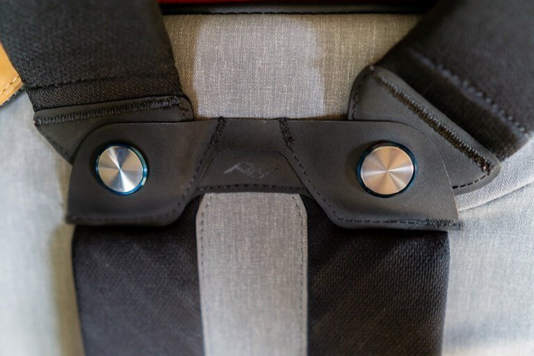 Another innovation we really appreciate about the Everyday Backpack are the shoulder straps. Unlike most backpacks where the straps are sewn into the top of the bag, the straps on the Everyday Backpack are anchored with a mechanical axial joint so each strap can function individually. These axial points pivot to help optimize comfort for all body types. We alternate backpacks depending on where we’re shooting or traveling for the day so we can verify these bags work for different body types and frames.