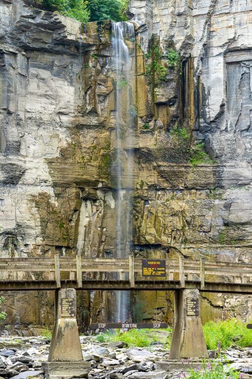 Taughannock Falls State Park is home to a stunning 215 ft single drop waterfall that plunges into a deep bowl-shaped gorge. You can hike a short and flat gorge path to stand at the bottom of Taughannock Falls, and you can also head up to an elevated viewing area to see the waterfall in all its glory. It’s a lovely place to visit on the edge of Cayuga Lake, so don’t miss it!