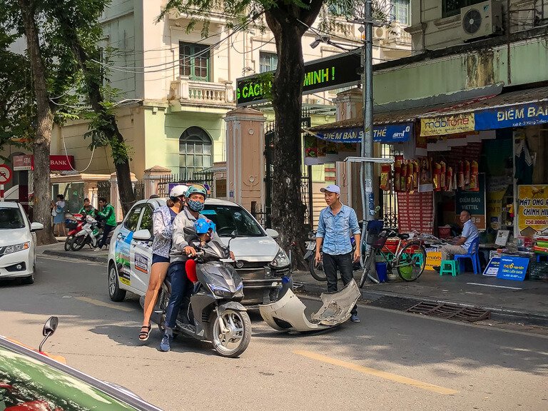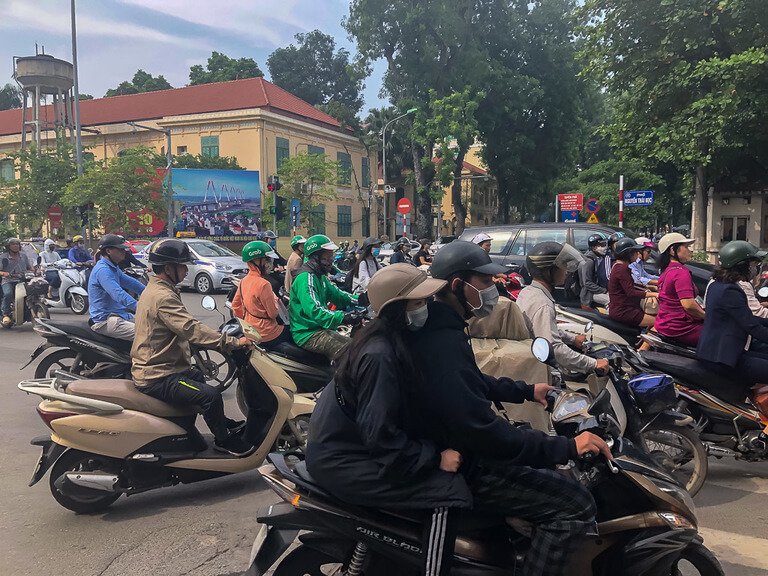 Traffic in Vietnam can be frustrating and exhausting. There’s no order or designated road lines. Many drivers tend to disregard traffic lights, drive very fast and overload their vehicles with people or goods. We’ve even seen drivers eating banh mi, smoking cigarettes, FaceTiming and speeding down the tiny sidewalks.